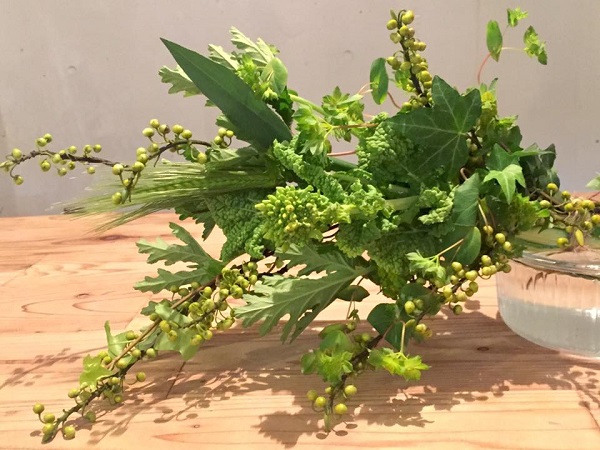 どのお花屋さんでも目にすることの多いグリーン(=葉っぱ)だけで