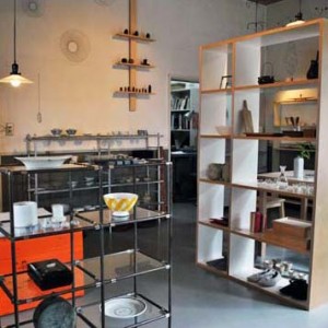 店主・関昌生さん夫妻のブランド〈sava〉によるオリジナル家具『白shiro』、ワイヤーアート、フェルト製品のほか、作家ものや古道具、雑貨など、シンプルなものを中心にセレクト。実用的なものからオブジェまで、ユニークな商品が並ぶ。